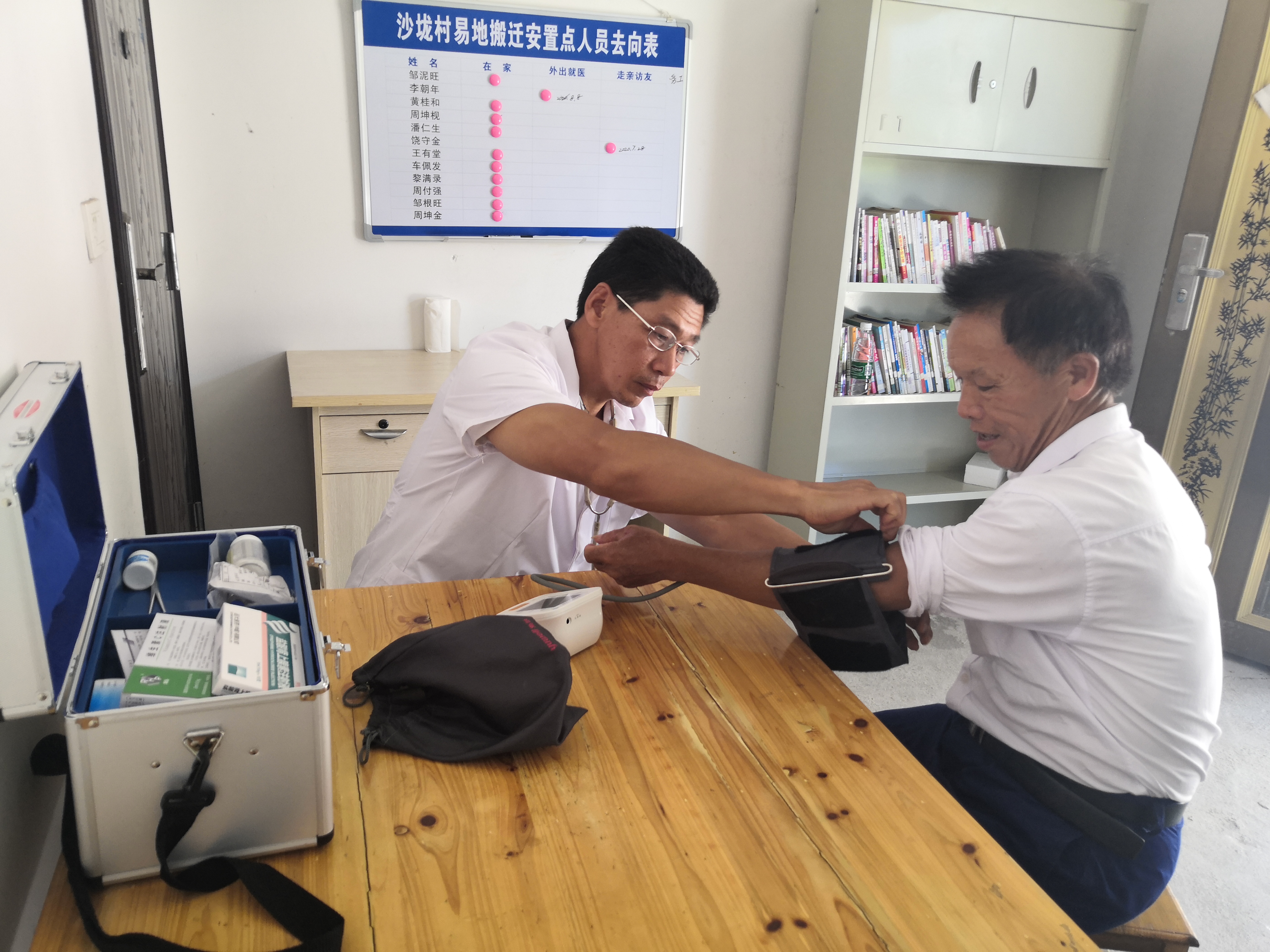 和贫困户交谈检查身体。