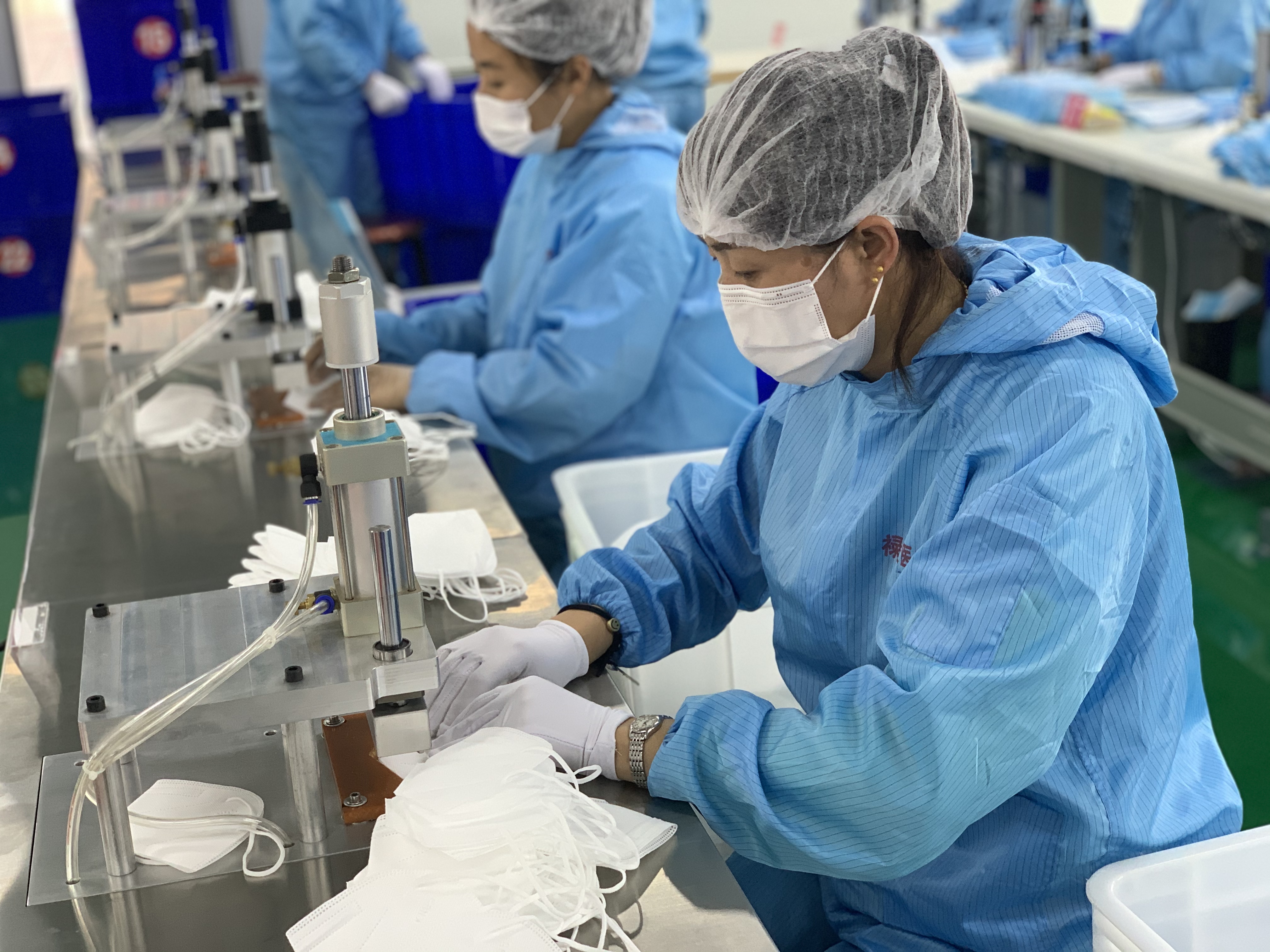 黑龙江省齐齐哈尔市克山县双河镇管辖内企业,加班加点制作口罩,为让克山县父老乡亲带上平价、优质的口罩,减少疫情期间口罩紧缺问题。