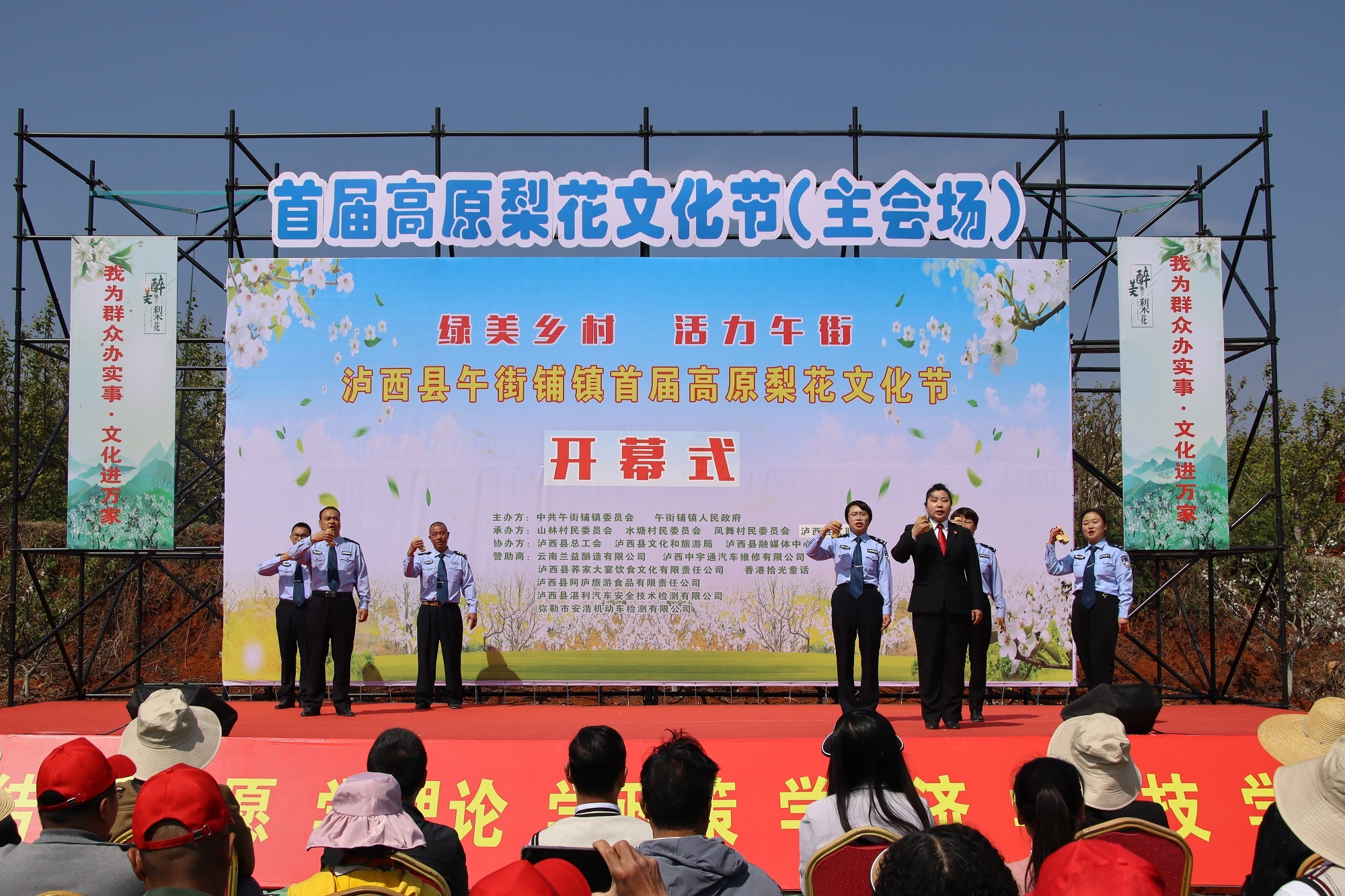“以产赋能”融活民族产业破圈强链。始终把加快民族地区经济发展作为推动民族团结进步的第一要务,依托“高原特色水果大镇”优势及彝族撒尼、小白彝等民族文化资源禀赋,配套建设农业观光游览园、特色饮食品鉴园、民族文化赏析园、特色农屋住宿园等乡村旅游园区,培树“花乡果港、歌舞之乡”品牌,不断拓展“以农促收”的经济渠道。借助彝族火把节、密枝节、傣族“祭龙泼水节”、晒红节等系列传统节日,谋划举办梨花节、丰收节等午街铺特色活动,吸引县内外上万余名游客慕名而来,以点带面带动梨桃水果产业等高原特色现代农业发展,从而实现群众增收。