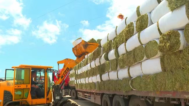 时下,正值猫尾草收获和销售的季节,走进甘肃省定西市岷县寺沟镇“万亩猫尾草种植基地”,一片片绿油油的猫尾草,如绿地毯铺在乡村大地上,工人们正在娴熟地收割、打捆、搬运、装车,忙得不亦乐乎,呈现出一派丰收的景象。