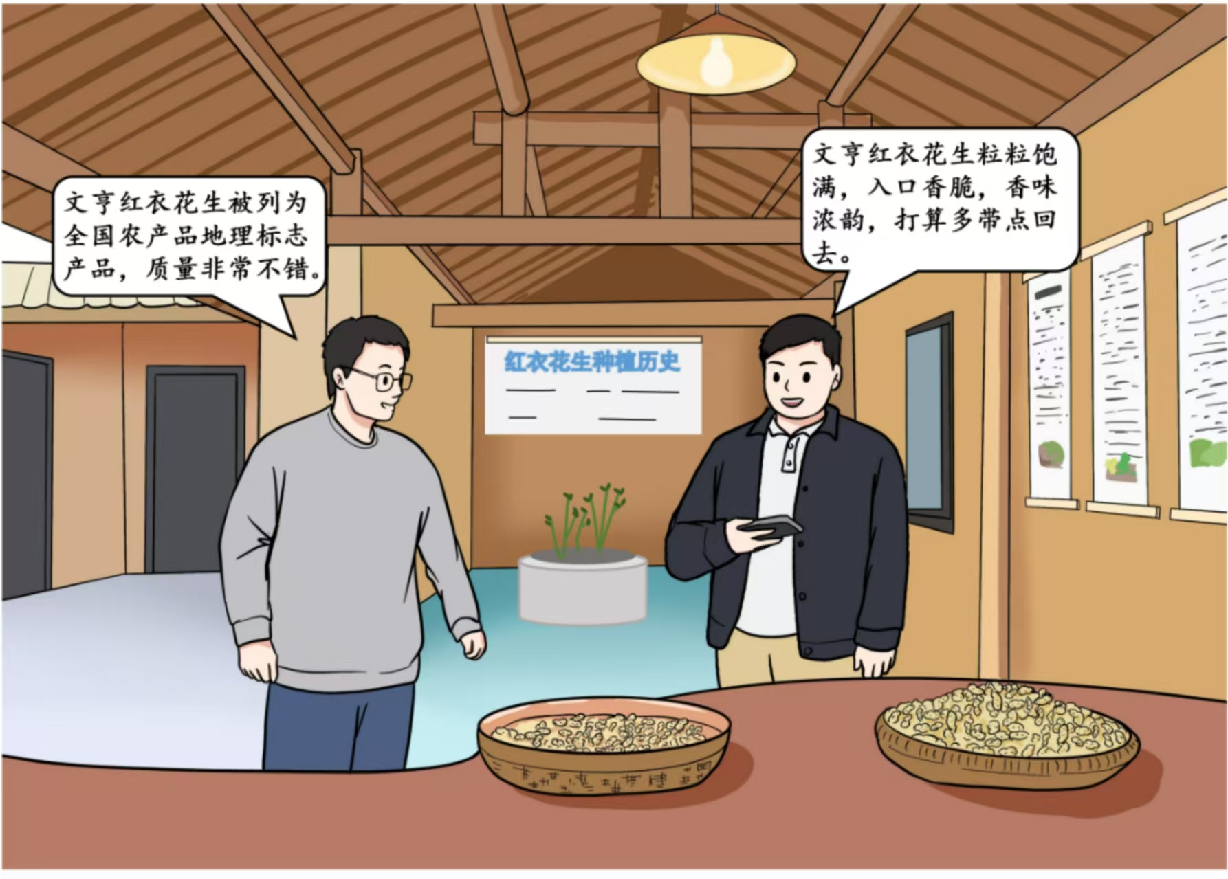注重宣传展示,品牌塑造“扩市场”。以红衣花生展示厅为依托,通过泥塑模型故事解读、种植历史浮雕简介、实景种植分布等形式,多维度、全方位宣传展示文亨镇红衣花生特色。此外,红衣花生协会积极组织加工企业、专业合作社参加各类农产品博览会、产品推介会等,扩大品牌知名度,提高产品市场占有率。目前,文亨镇红衣花生已畅销深圳、厦门、江西等地,赢得了消费者的广泛赞誉和认可。