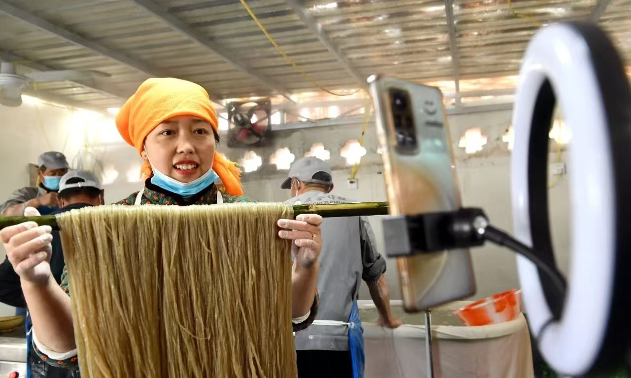 为了推动红薯粉条产业的发展,大李庄村积极组织开展红薯粉条制作技术培训,提高师傅们的制作水平。通过参加各类农产品展销会等活动,提高了红薯粉条的知名度和美誉度,“大李庄红薯粉条”已经成为了一张靓丽的地方名片。近年来,大李庄红薯粉条不仅在周边地区畅销,还通过与合作商签订销售合同、电商直播销售等渠道远销全国各地。