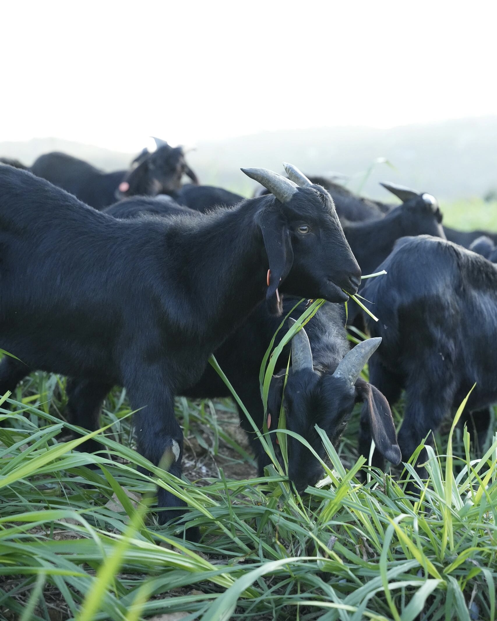 据戴东洪介绍,他们基地的黑山羊是采用“半舍饲+半放牧”的饲养模式,在维护生态的前提下,让黑山羊在规定时间、规定范围内到稻田、山林间自由觅食,既提升了羊肉的口感,减少了饲养的成本,又实现了生态与经济的双赢。