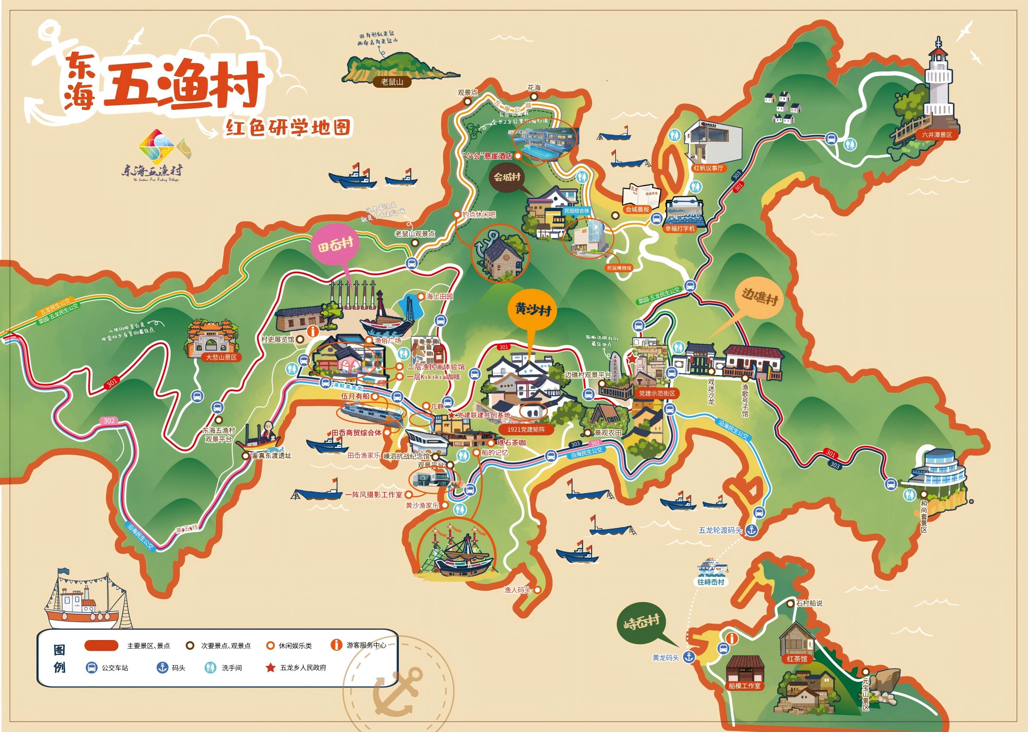 重构渔村组织链,从物理聚合到发展质变的跃升。五龙乡党委突破传统行政壁垒,联合毗邻乡镇黄龙乡构建起“党委统筹——片区共建——产业协同”的三维治理架构,通过建立“组织联建、产业联营、政策联动、帮扶联享”的四联机制,实现“双龙”片区项目建设、产业规划等重大事项互融互通,针对2025年度即将实施的“福如东海”跨乡镇景区项目,已明确落地三大文旅项目,预计可带动村集体经营性收入增长5%以上。此外,乡党委以渔民画等非遗、特色渔农产品、红色教育基地等独具渔村特色的元素为支撑,牵头挖掘特色渔文旅资源10余处,推出5条“红色研学游”路线,带动20余名村民实现增收,实现“一村一品”向“多村共链”的转型升级。“过去打零工要到镇上去,时间长,工资还低,没想到现在能当上渔民画老师,一次能有300块嘞!”黄沙村洪女士脸上洋溢着幸福的笑容。