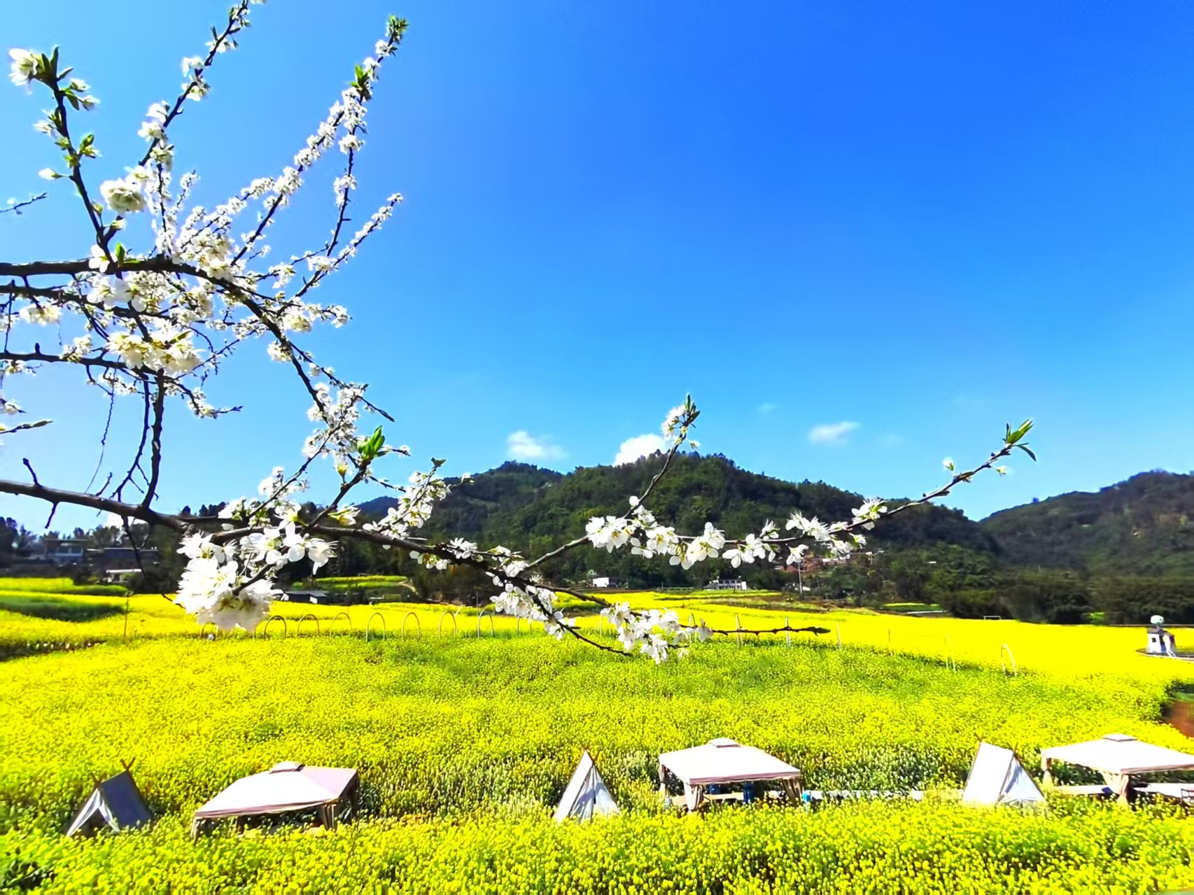 要问春归何处见?花开满山枝子头。漫山遍野的白色李花、黄金灿灿的油菜花田和燃烧红尘的艳丽桃花在青山绿水中相映成趣,勾勒出的“水墨丹青”跃然眼前,景如画、画中游的体验感,吸引广大游客纷至沓来。