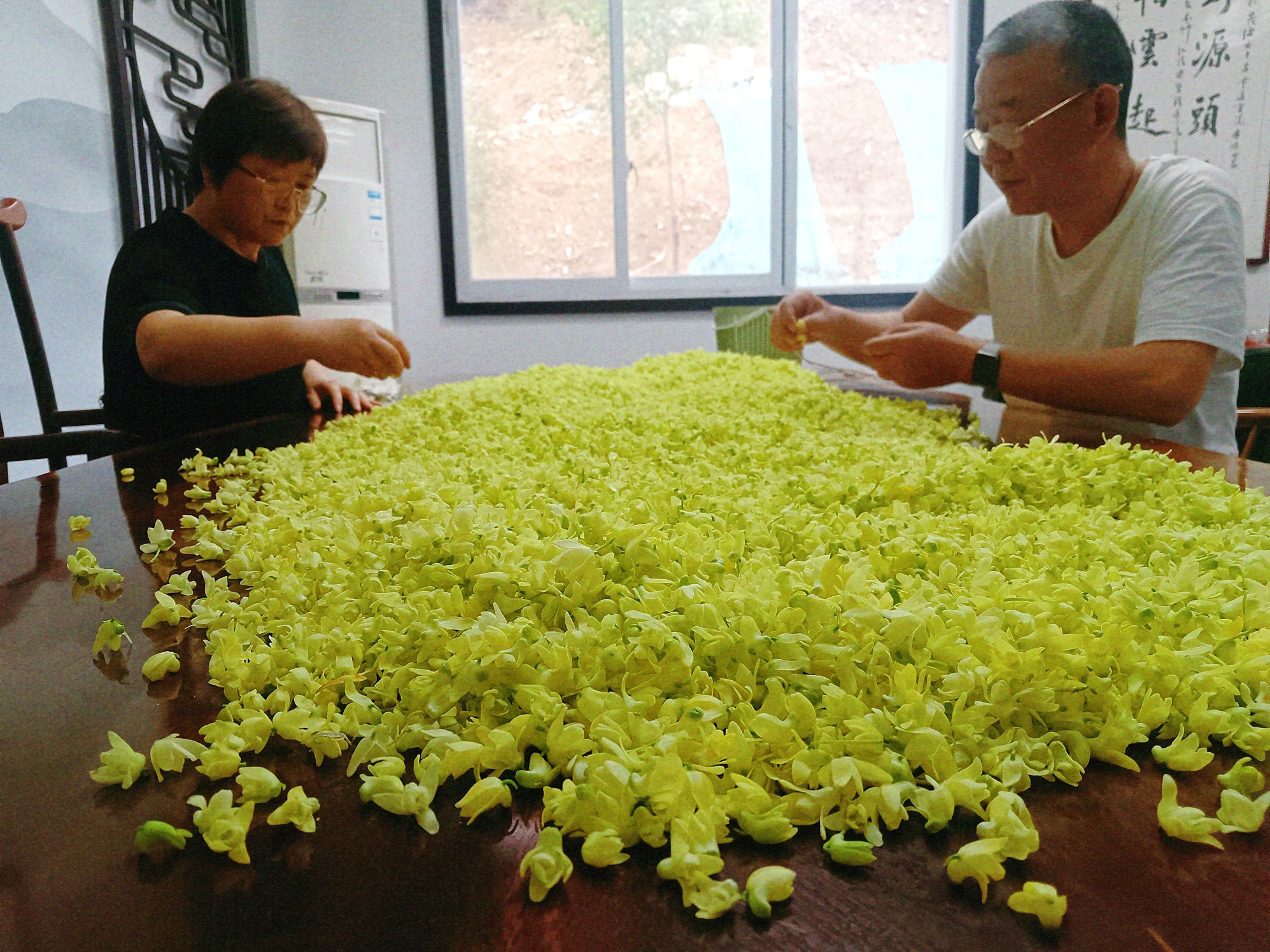 近日,安徽省六安市金寨县青山镇汤店村石斛迎来盛花期,当地群众忙着采摘、分拣,呈现出一片繁忙景象。