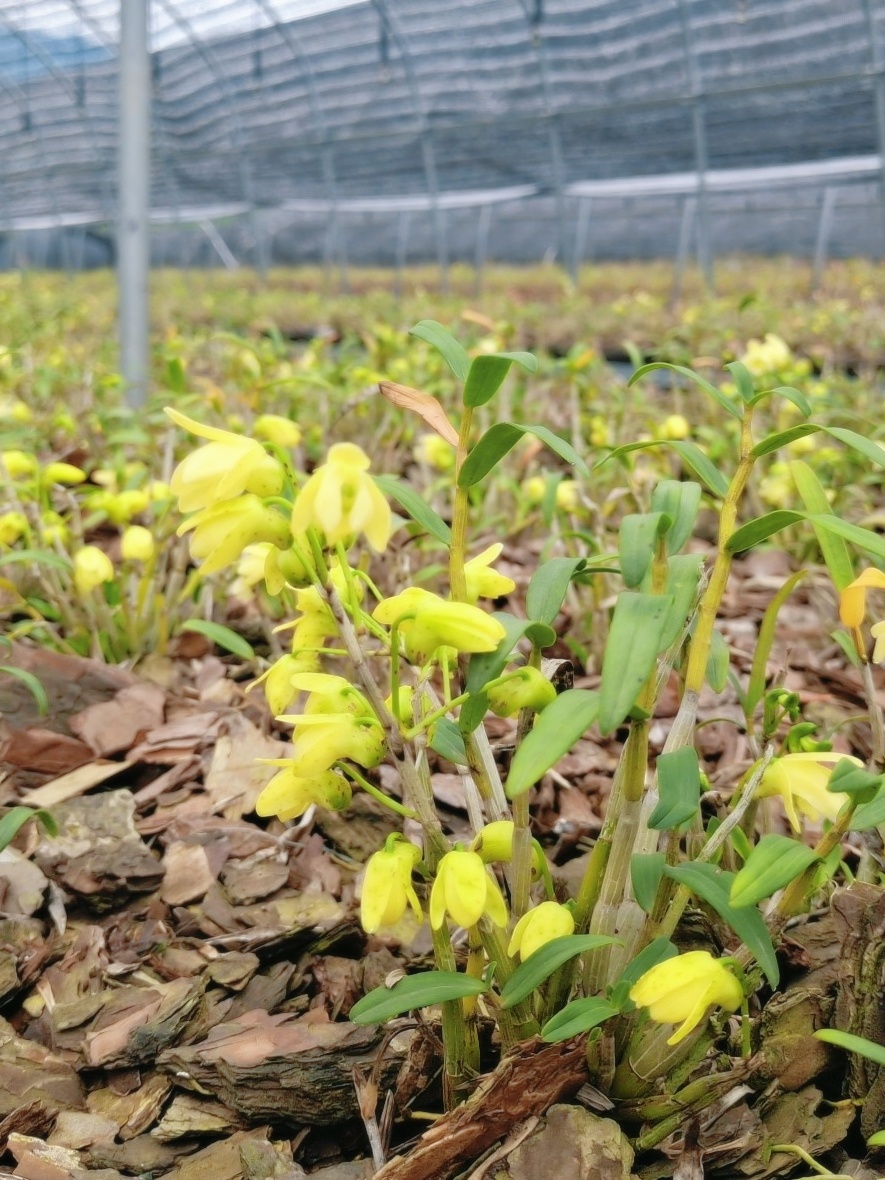 走进青山镇汤店村石斛种植基地,一座座大棚整齐排列。大棚内,嫩黄色的石斛花缀满枝头,清新的香气弥漫在空气中。连日来,当地群众忙碌地穿梭于基地内,采摘着成熟的石斛花。一朵朵嫩黄的花儿在他们手中轻轻摇曳,似在欢庆丰收。
