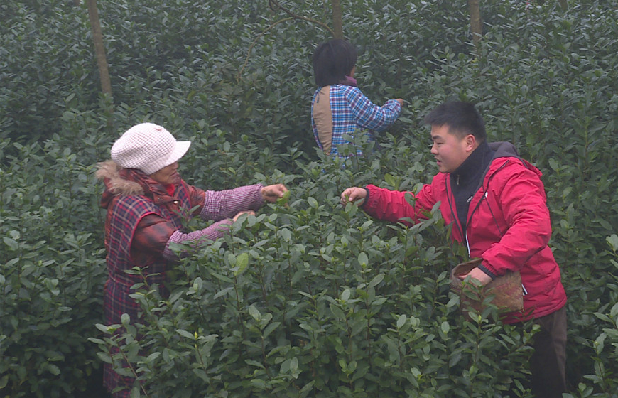 走进四川省宜宾市江安县夕佳山镇邵塆村茶园,姑娘们身背茶篓,穿梭在茶树间,灵巧的双手上下翻转,采摘着鲜嫩的茶叶,一大捧一大捧茶叶装进了背篓。