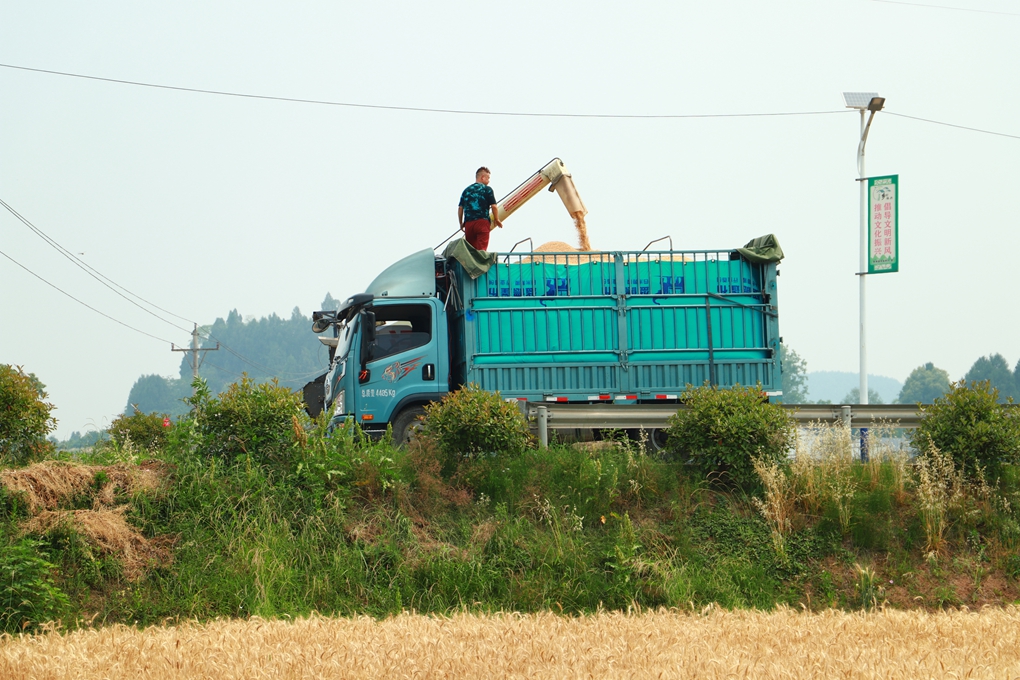 金穗千重浪,沃野丰收忙。四川省西充县青狮镇观音桥村2100余亩小麦迎来丰收季,联合收割机在金色麦浪中往来穿梭,饱满的麦粒如雨倾落,奏响集体经济增收的丰收序曲。