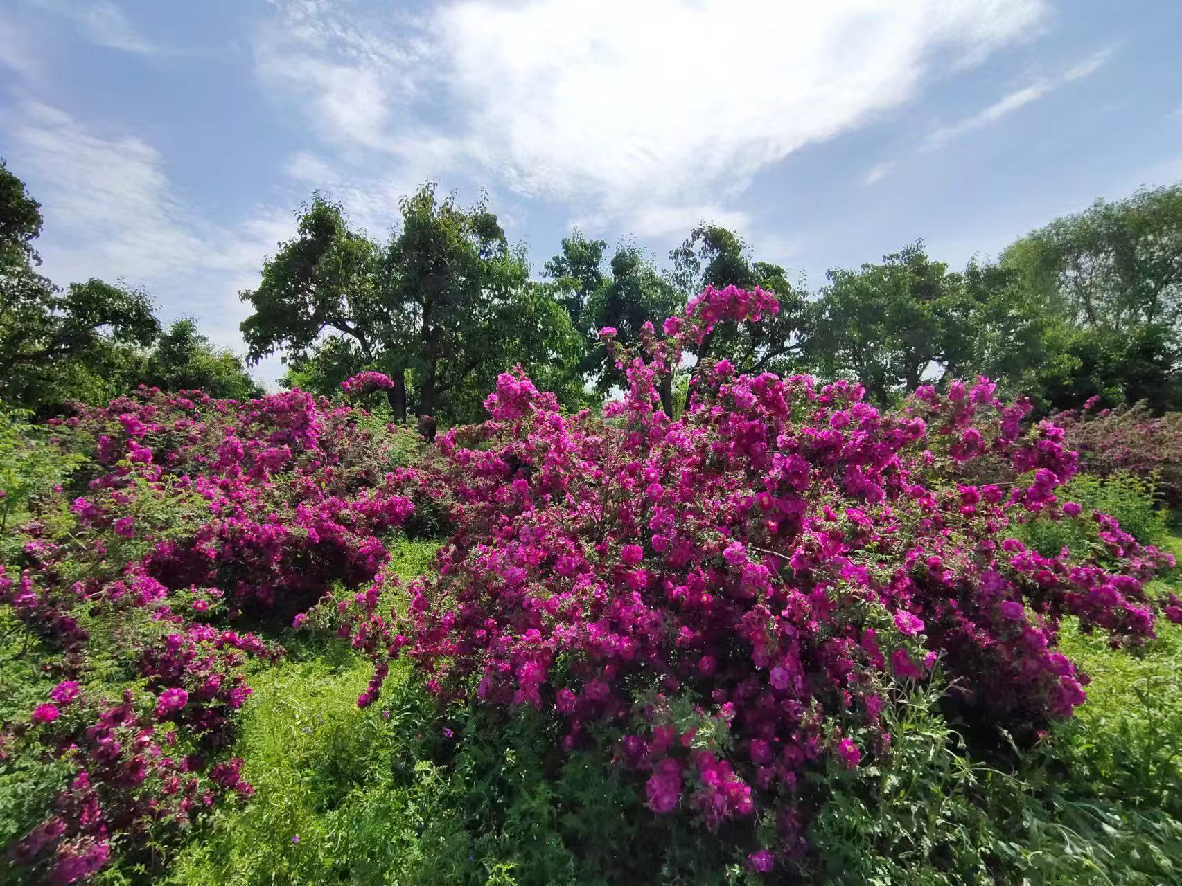 蝉鸣鸟啼,夏木繁茂。时下,走进享有“中国玫瑰之乡”美誉的甘肃省永登县苦水镇,绵延庄浪河畔十里的万亩玫瑰,迎风绽放,馥郁芬芳,沁人心脾。助农党员先锋队和村民们正穿梭在花海间,熟练采摘带着晨露、色泽饱满的玫瑰花苞,田间地头一片欢声笑语。