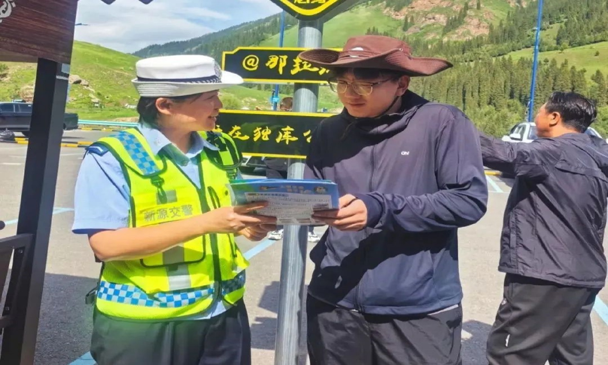 近日,“中国最美公路”独库公路全线开通。新疆维吾尔自治区新源县公安局交警大队联合多部门,以“严格执法+暖心服务”双轨并行模式,为游客畅享壮美风光筑牢安全屏障,倾力打造平安旅游新标杆。