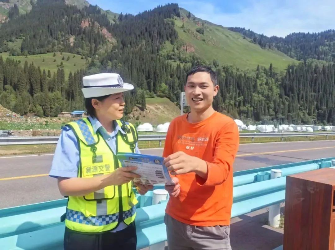 创新服务延伸温度,传递人文关怀。在那拉提“最美服务站”,新能源充电桩解游客“里程焦虑”,“最帅交警”成亮丽风景。针对复杂路况与自驾热,民警在执勤点发放安全手册,详细讲解行车要点与应急避险知识,并通过现场演示、互动答疑,手把手传授车辆自检技能,让安全宣传更接地气、服务更贴心。