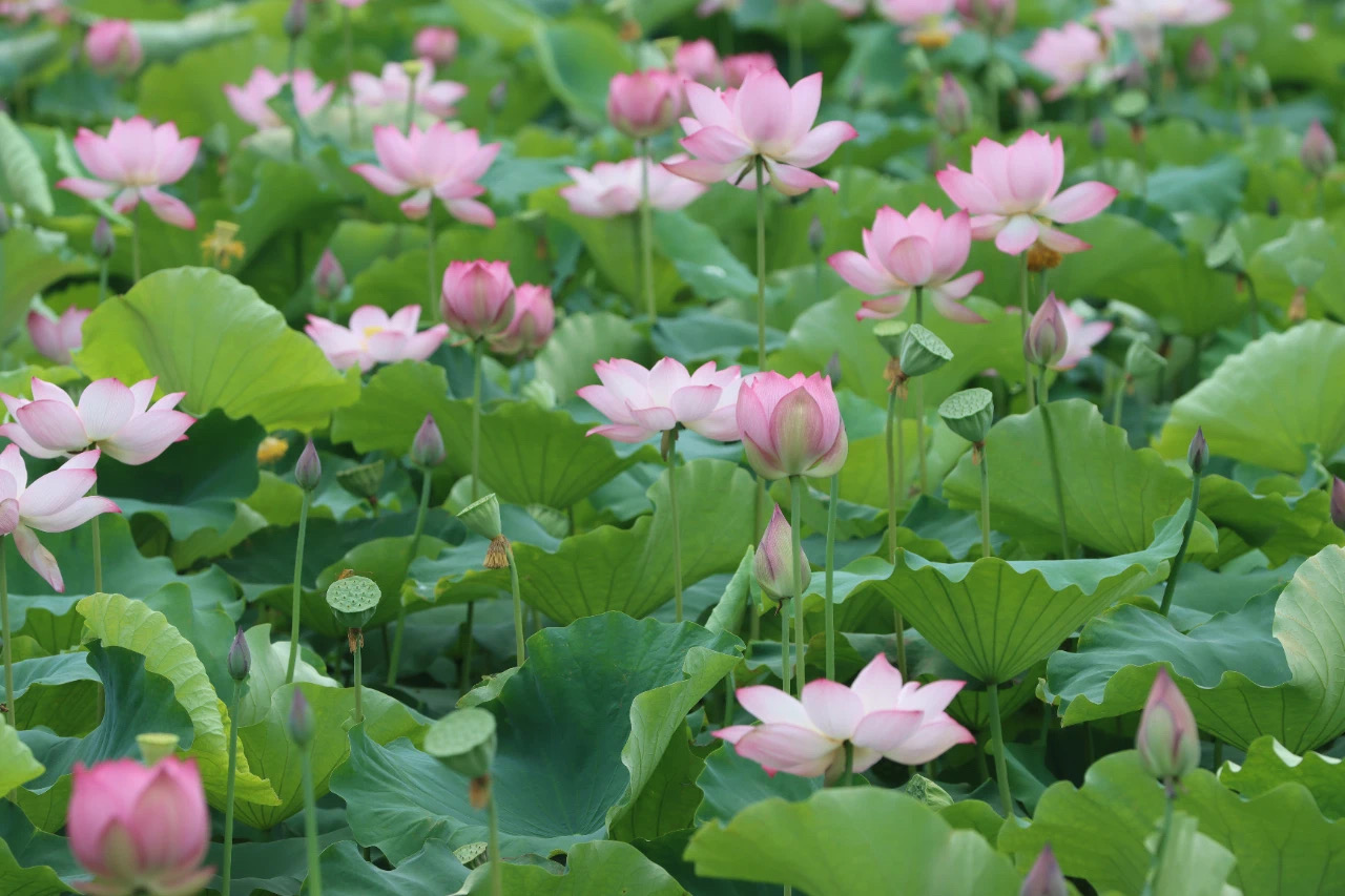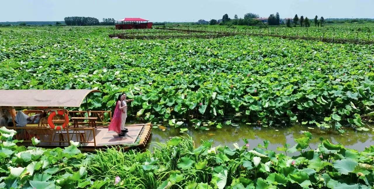 盛夏时节,正值荷花盛放。走进湖北省武汉市江夏区法泗街道万亩荷塘基地,“接天莲叶无穷碧”的景象便映入眼帘,一望无际的荷叶随风摇晃,颜色各异的荷花竞相开放,鲜嫩挺拔的莲蓬点缀其中,绘就了一幅乡村振兴的美好图景。