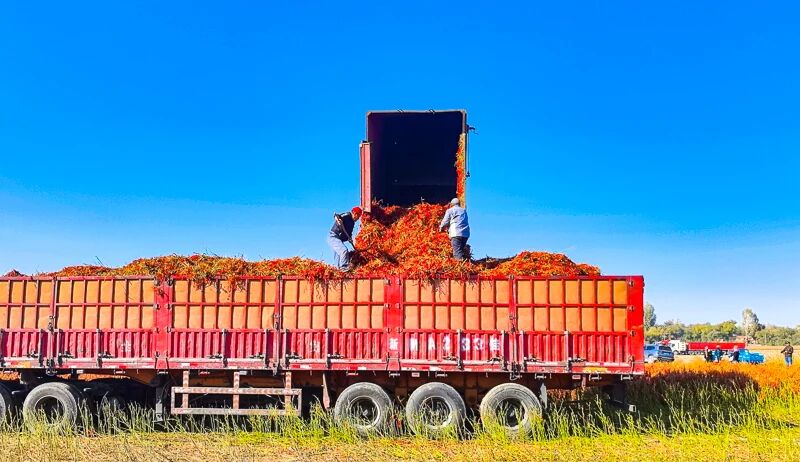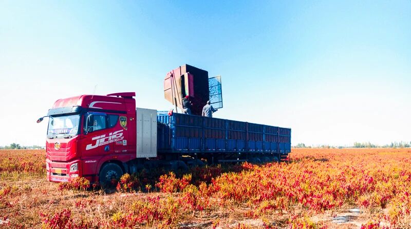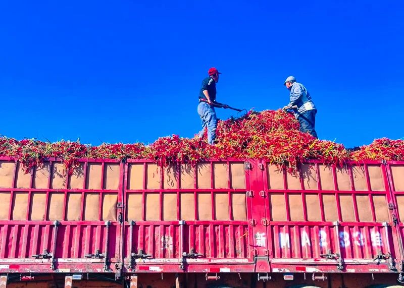 “今年光照充足、雨水适中,线椒果实饱满、色泽鲜亮,产量和品质都比去年提升明显!”基地椒农正忙着将刚采收的线椒装车,满手的红泥挡不住他眼中的光亮。“这些鲜椒将及时运往吐鲁番晾晒加工,那边干燥的气候能最大程度锁住椒香,让鲜椒‘蜕变’成优质干椒,卖价能提高不少!”