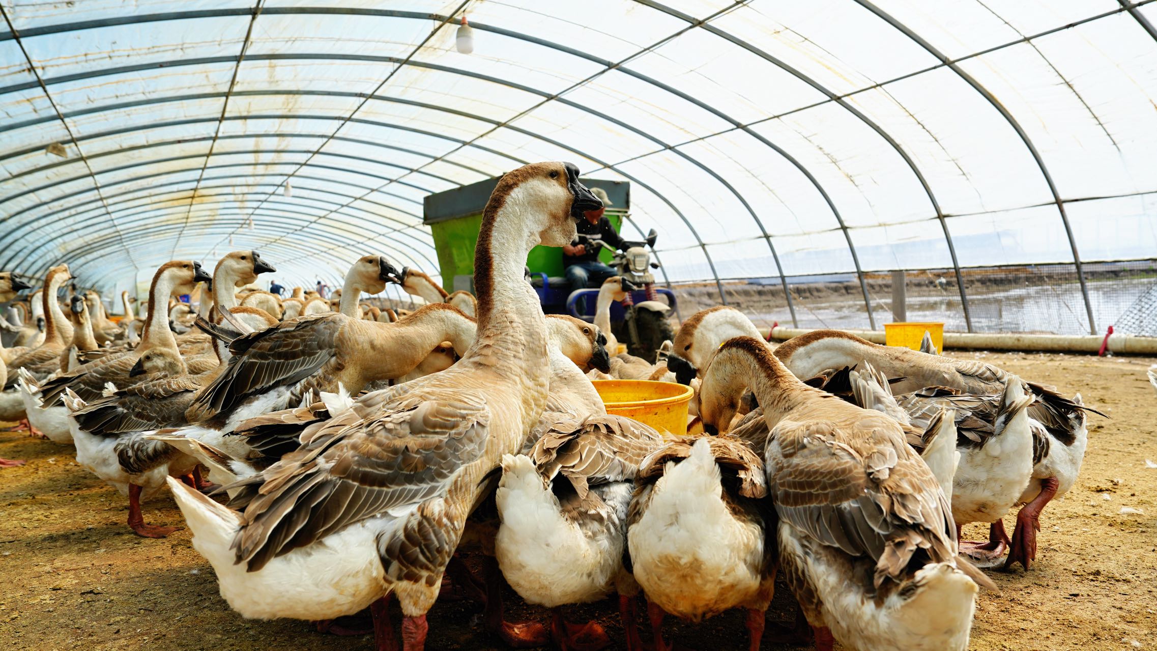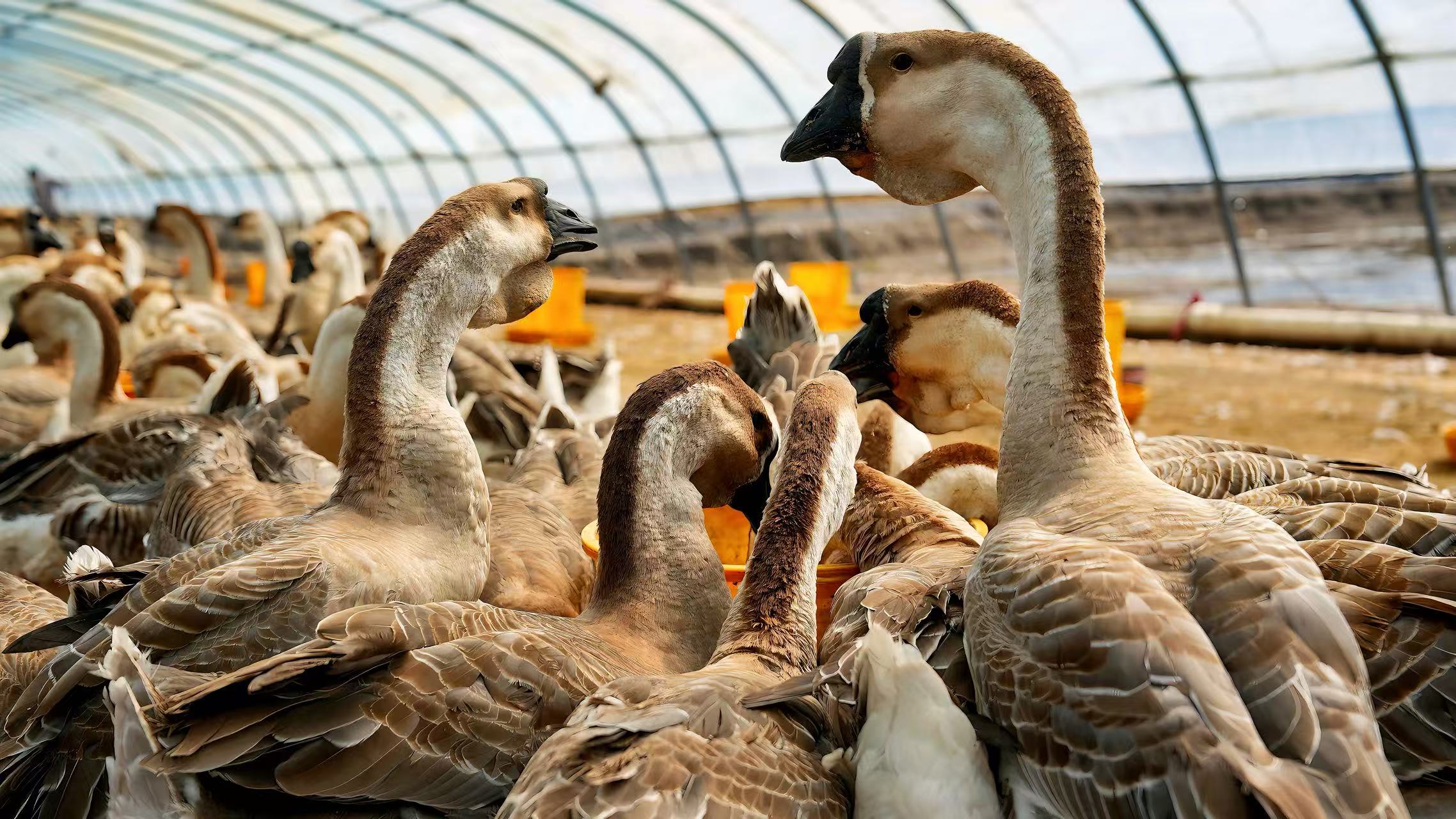党建领航定方向,特色养殖兴产业。富锦市积极探索“党支部+合作社+基地+农户”的发展模式,由村党支部牵头、党员带头,引导群众共同发展狮头鹅养殖。通过推行标准化养殖与精细化管理,产业规模持续扩大。2024年,全市狮头鹅养殖量已达5万只,成为东北地区最大种群,商品鹅出栏量实现翻倍增长。