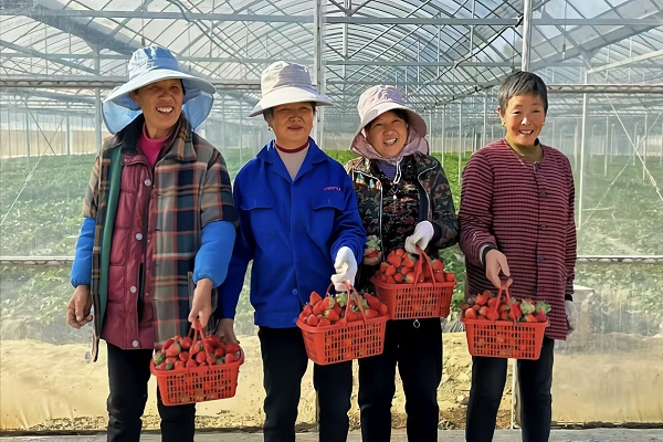 党组织不仅领着村民种好草莓,更帮着拓宽增收路。村集体整合项目资金,配套建设了200立方米的冷链仓储中心,引进草莓清洗、分选、包装生产线,开发草莓酱、草莓干等产品,将附加值提升了30%。同时,延伸开展秸秆回收利用业务,形成“草莓为主、多元互补”的生态循环产业。“现在一年四季有活干,采摘季每月能挣4000多,平时在加工车间也有稳定收入。”脱贫户李大姐对如今的日子很满意。