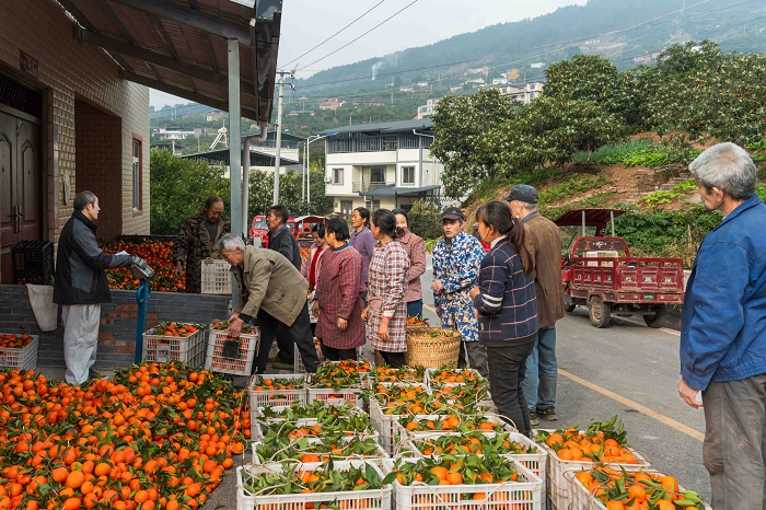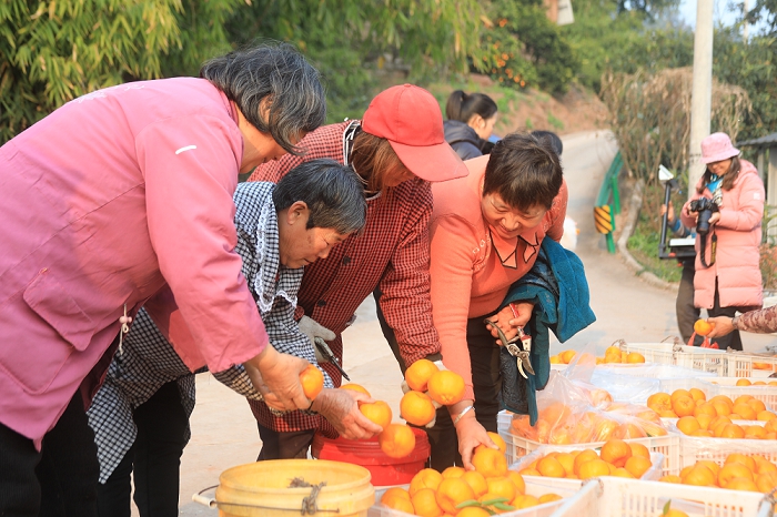 党建赋能,产业链条提价值。“组织带着干,农户有盼头,产业有奔头。”晒经村党支部书记的话,道出了党建引领产业发展的核心要义。在街道党工委的统筹指导下,村党支部主动扛起责任,牵头推进土地流转、务工组织与利益分配全流程工作,以每亩1000元的标准规范流转土地,既保障了农户土地收益,又为产业规模化发展腾出空间。同时,依托和美乡村示范区建设,村党支部积极拓展产业边界,推动农旅深度融合,围绕柑橘园打造采摘体验、田园观光等休闲节点,引入智慧农业系统,让传统果园焕发“智”慧活力。党员志愿者主动亮身份、作表率,组建技术帮扶小队,为周边千余亩散户果园提供统防统治、技术指导等服务,带动全域柑橘产业提质增效,让产业链条不断向高端延伸。