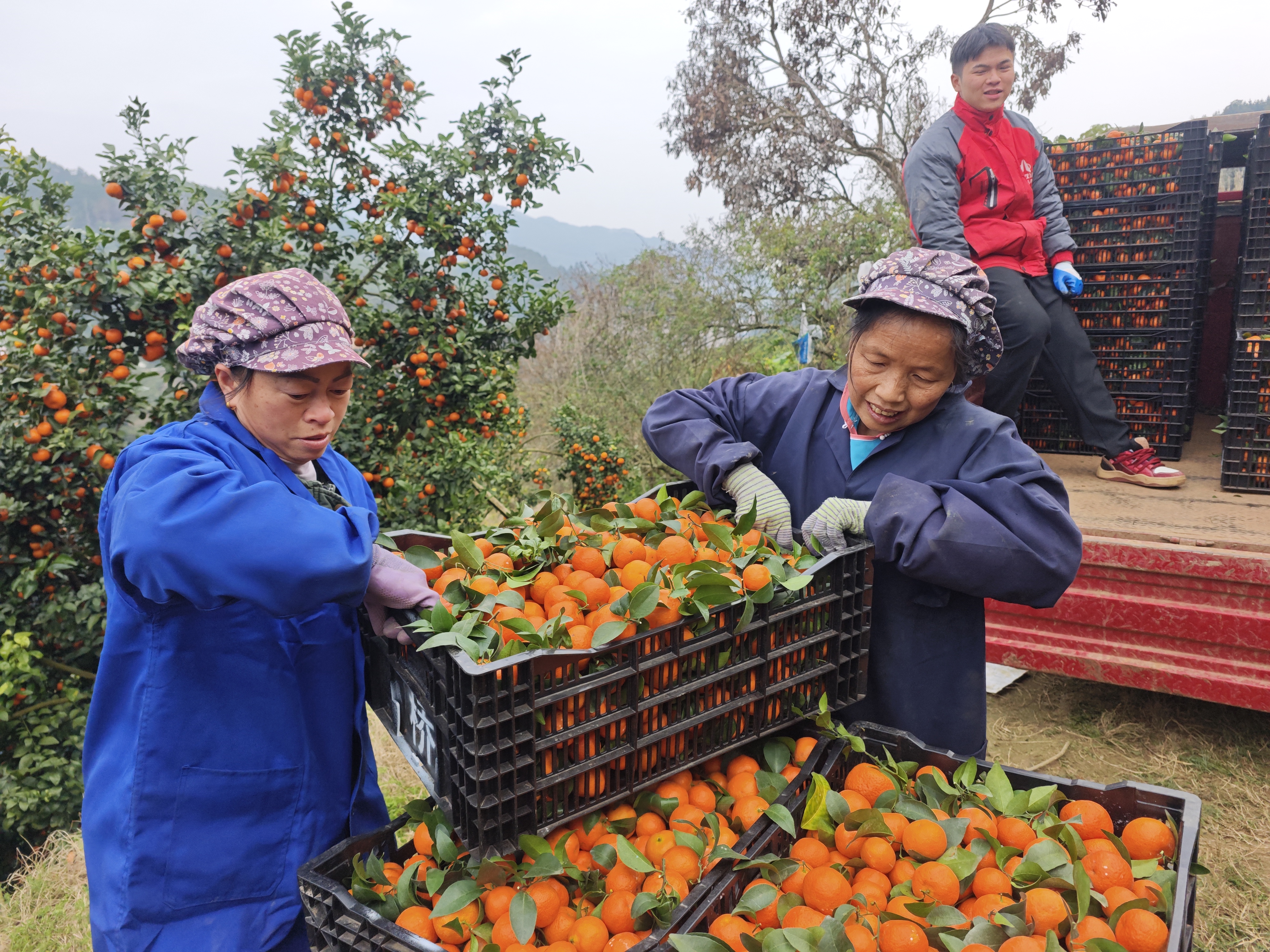 走进弄亭村砂糖桔种植基地,桔香四溢。果农们穿梭林间,动作娴熟地采摘、搬运,笑容洋溢在脸上。路边,一筐筐鲜果正被快速装车,发往全国各地。